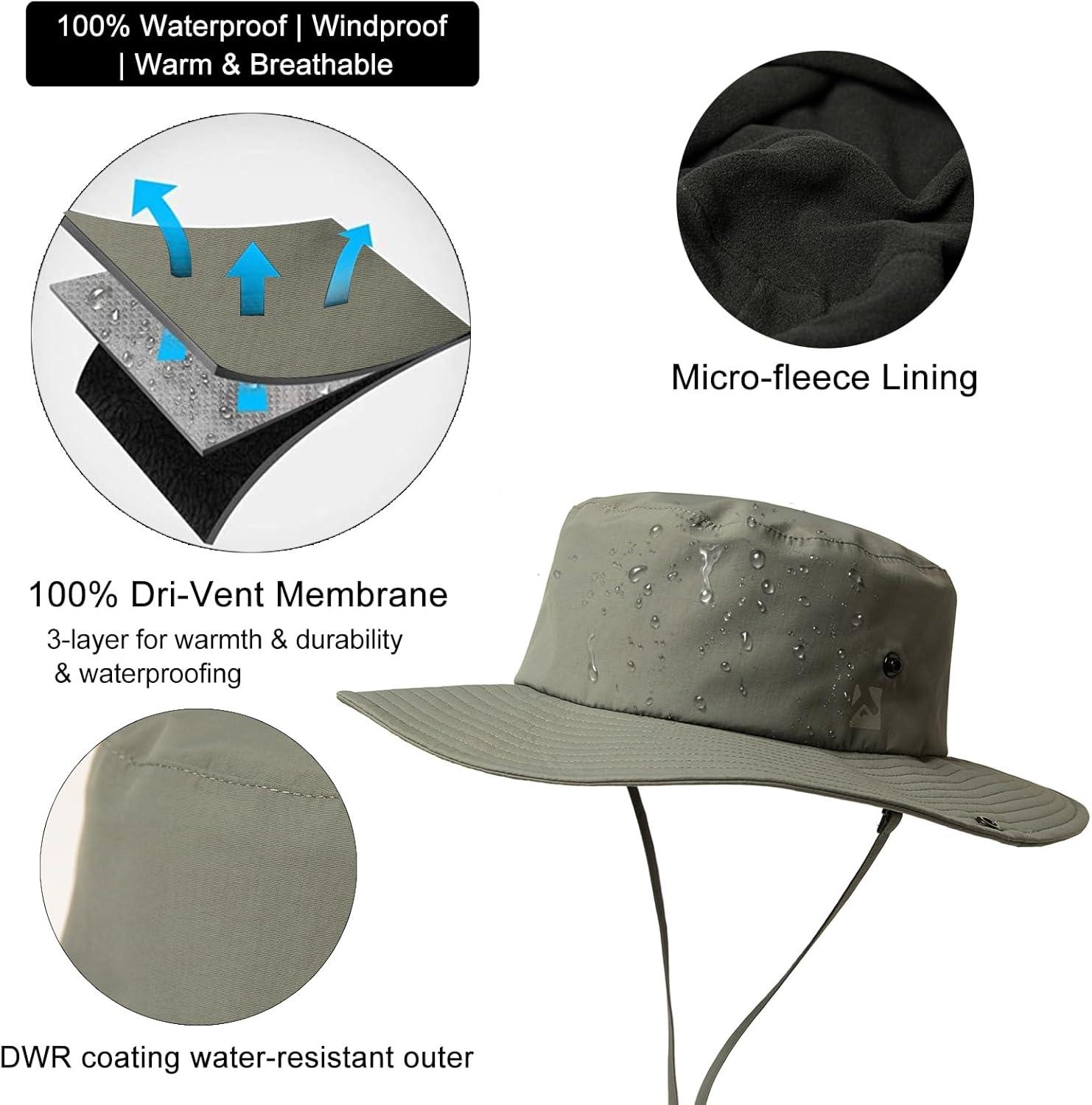 Oversized XL XXL Waterproof Winter Bucket Fleece Lined Rain Hat Cold Weather Hiking Fishing Outdoor 57-65CM(Green)