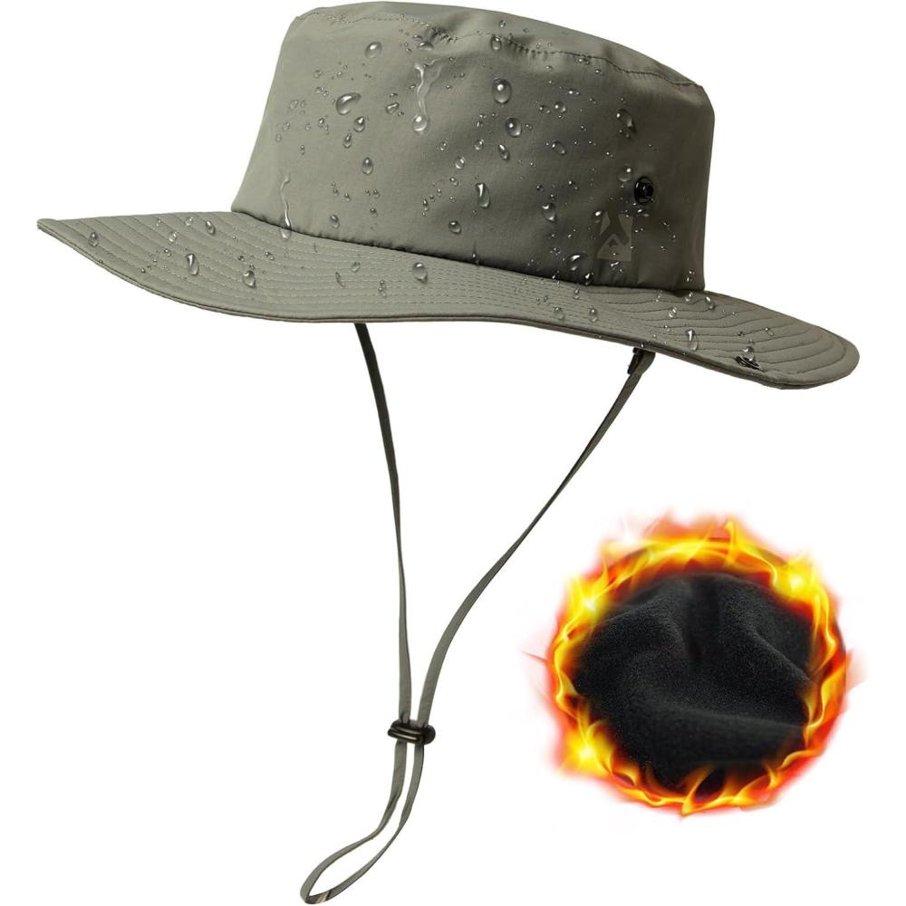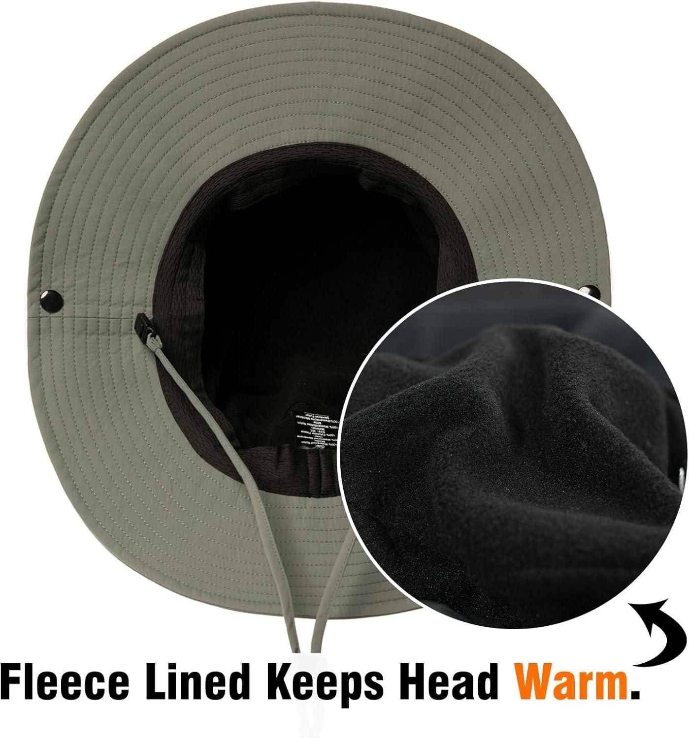 Oversized XL XXL Waterproof Winter Bucket Fleece Lined Rain Hat Cold Weather Hiking Fishing Outdoor 57-65CM(Darkgrey)