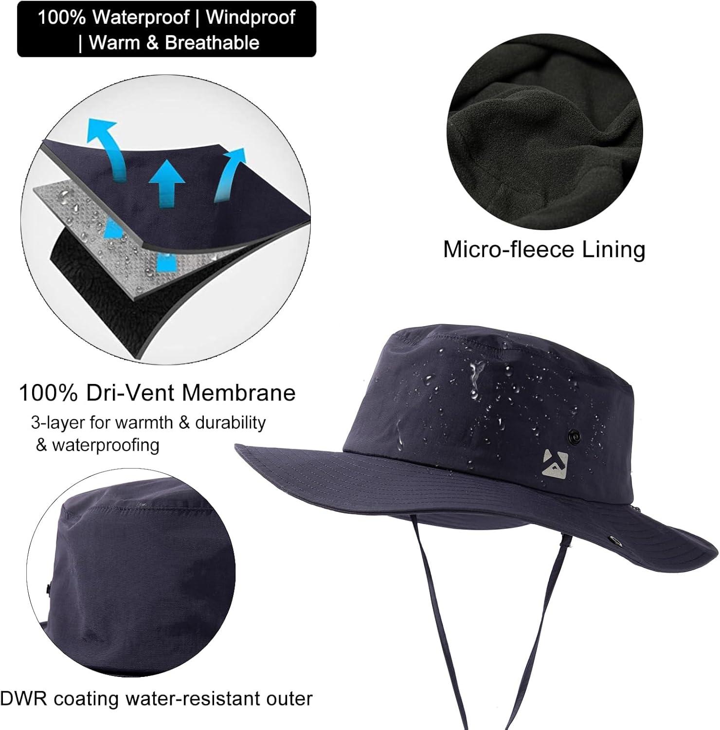 Oversized XL XXL Waterproof Winter Bucket Fleece Lined Rain Hat Cold Weather Hiking Fishing Outdoor 57-65CM(Navy)