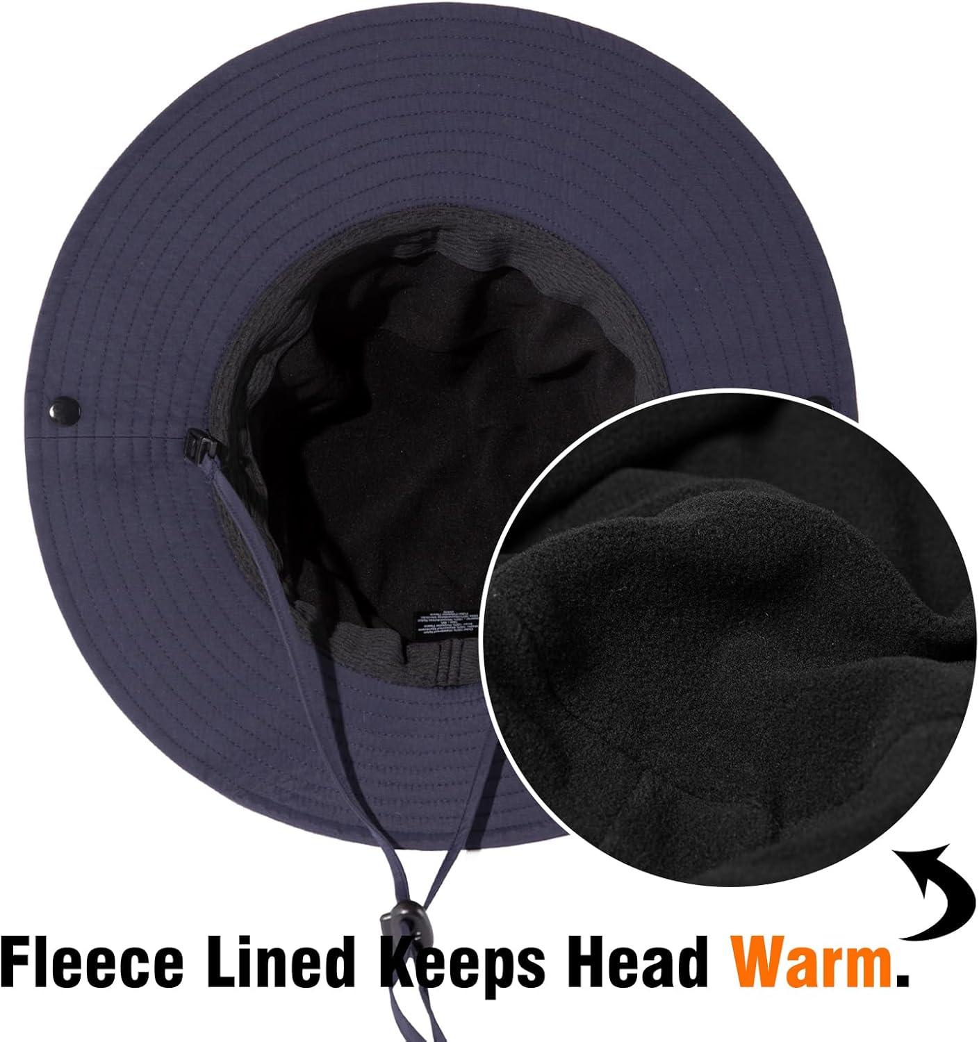 imageOversized XL XXL Waterproof Winter Bucket Fleece Lined Rain Hat Cold Weather Hiking Fishing Outdoor 5765CMNavy