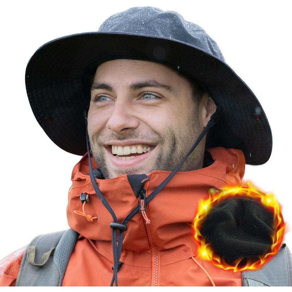 imageOversized XL XXL Waterproof Winter Bucket Fleece Lined Rain Hat Cold Weather Hiking Fishing Outdoor 5765CMKhaki
