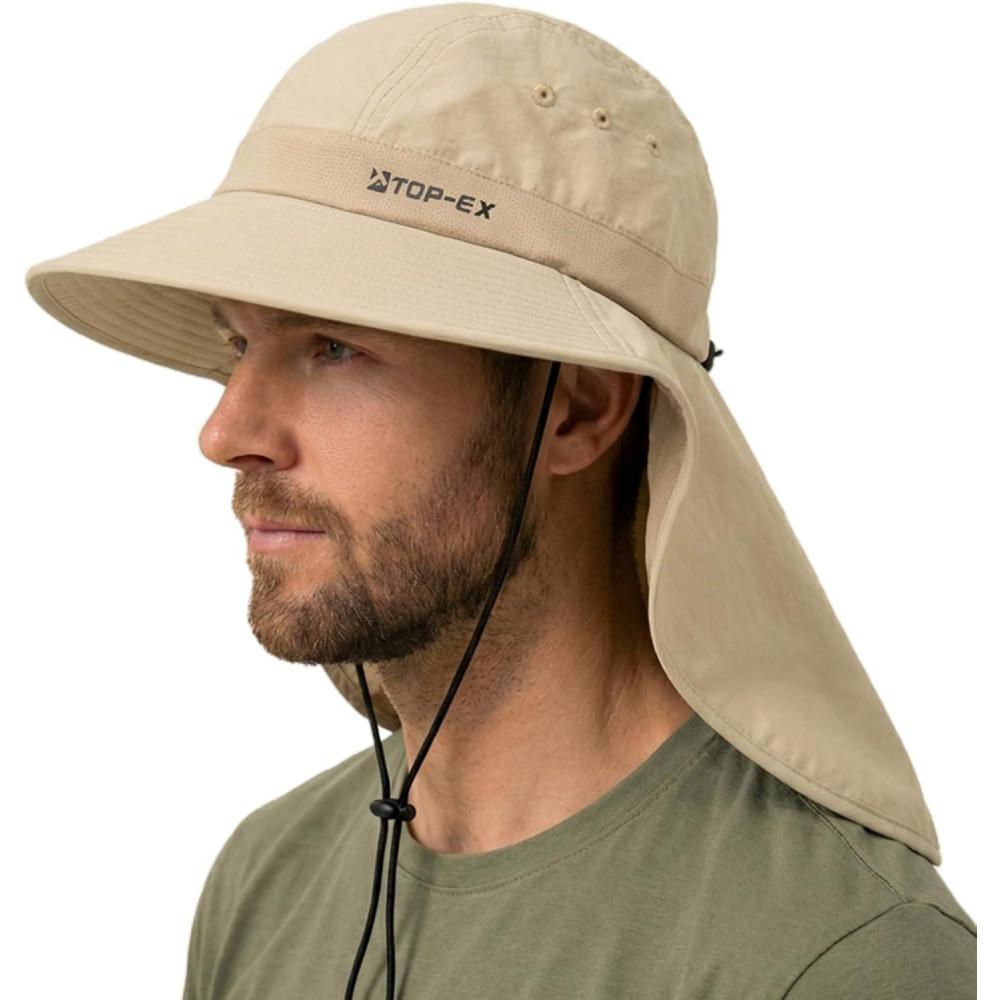TOP-EX Cooling Sun Hat with Neck Flap – UPF 50+ Wide Brim Breathable Hat for Hiking, Fishing & Big Heads(Oatmeal)