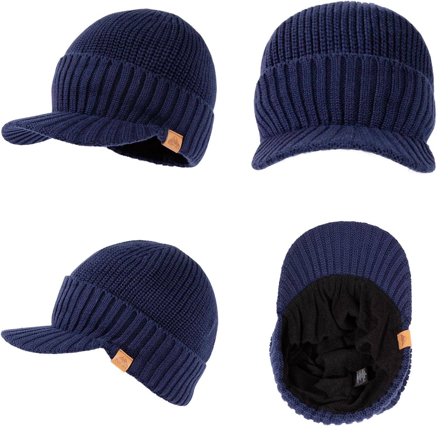 TOP-EX DryKnit™ 50% Merino Wool Waterproof Winter Beanie Hat with Brim Fleece Lined Knit Cap for Cold Weather & Large Head(Blue)