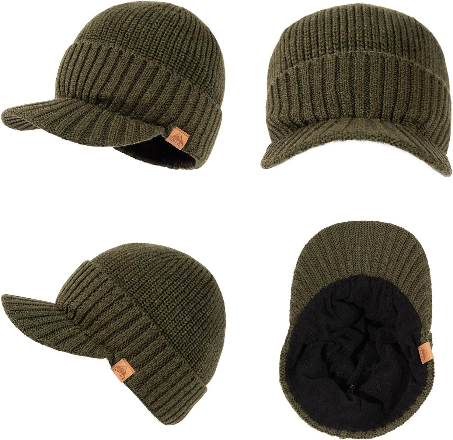 TOP-EX DryKnit™ 50% Merino Wool Waterproof Winter Beanie Hat with Brim Fleece Lined Knit Cap for Cold Weather & Large Head(Green)