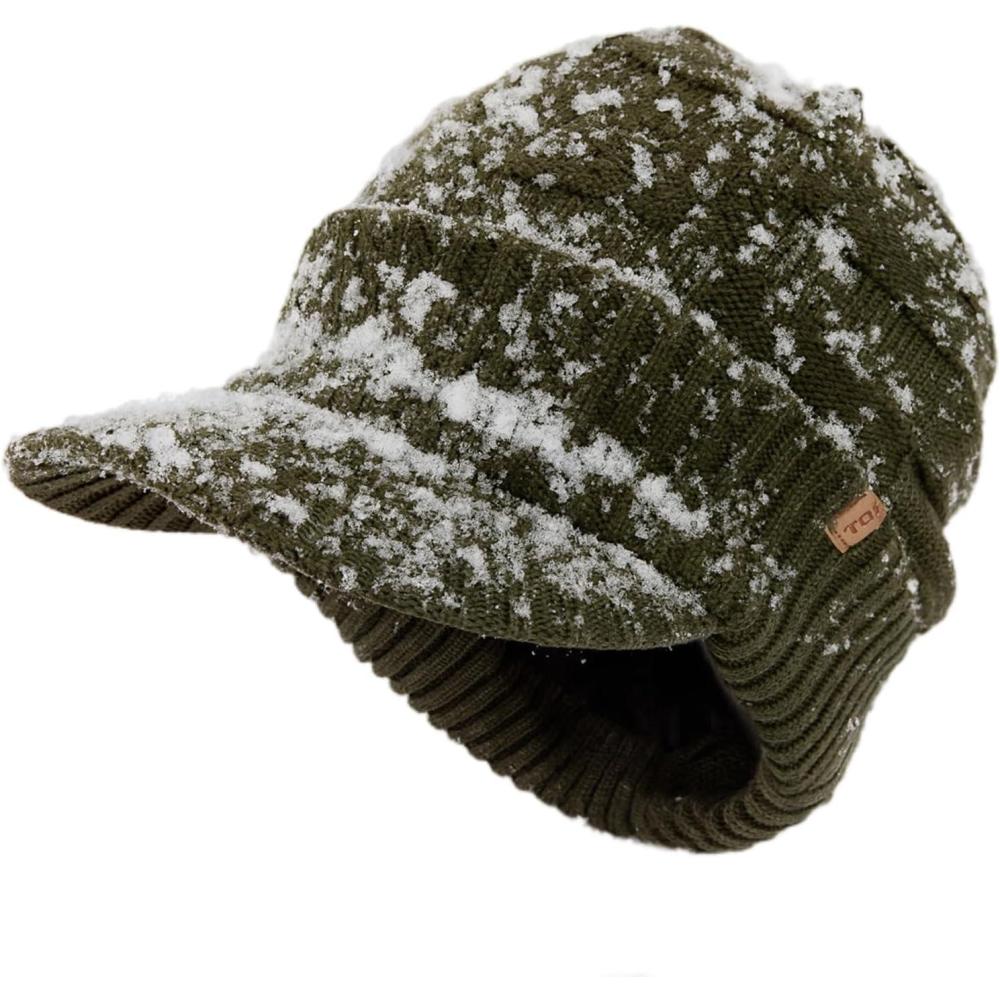 imageTOPEX DryKnit Waterproof LXLXXL Fleece Lined Merino Wool Blend Beanie with Brim Visor Cap Warm Winter Hat for Men WomenOliveranger