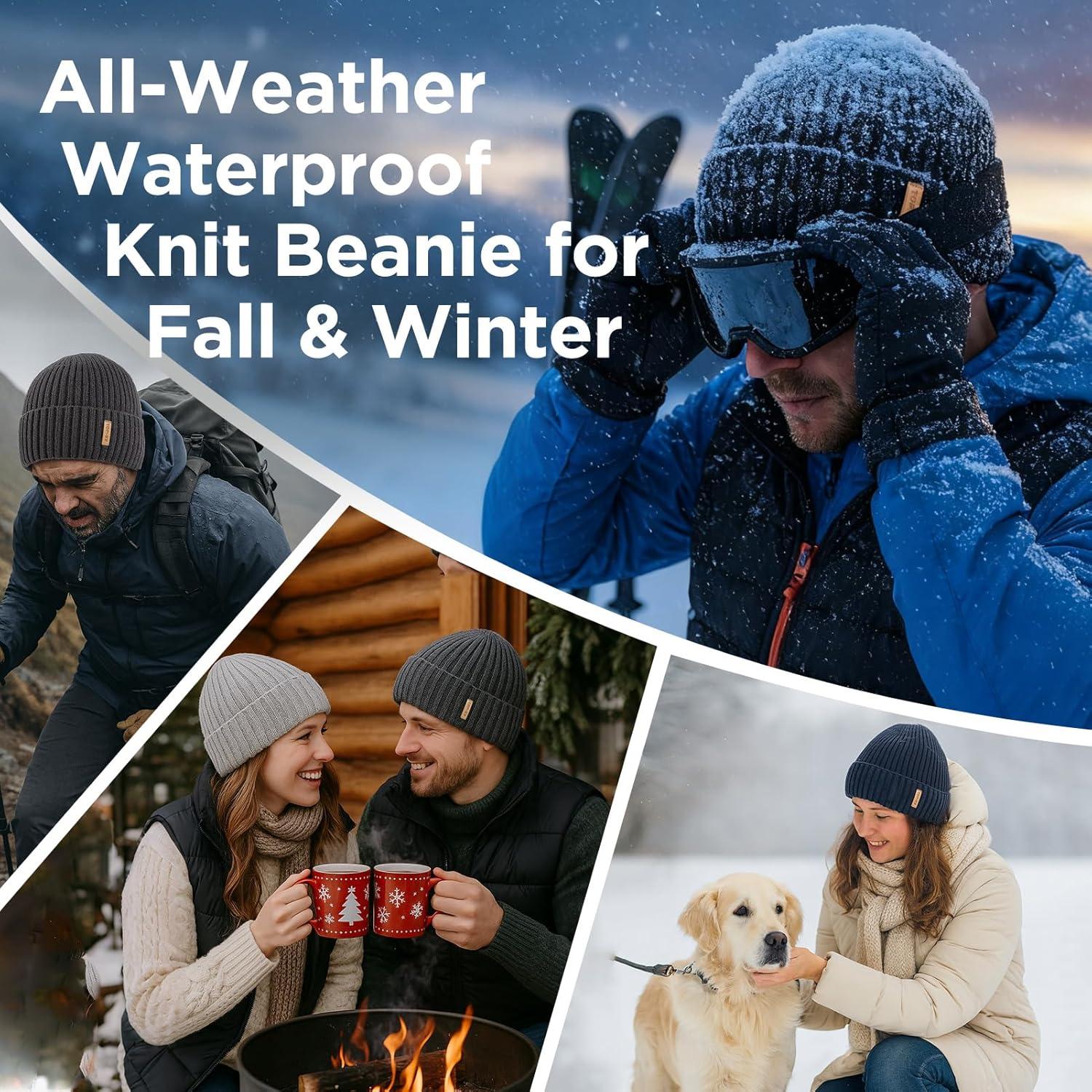 TOP-EX DryKnit™ Waterproof L/XL/XXL Winter Fleece Lined Beanie Hat for Men Women Warm Knit Watch Skull Cap Cold Weather(Burgundy(ember))