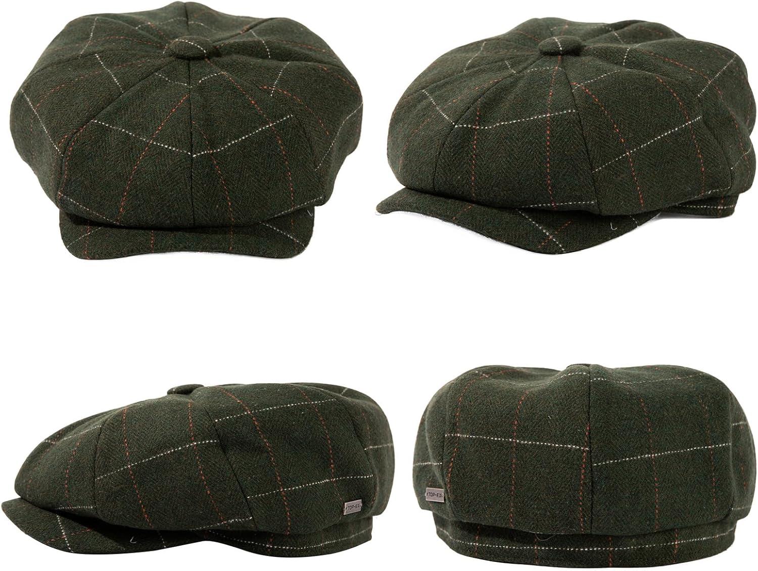 TOP-EX L/XL/XXL Wool Tweed Newsboy Cap for Men Paperboy Warm Winter Hat Vintage Flat Ivy Cabbie Gatsby Cap(Plaid Green)