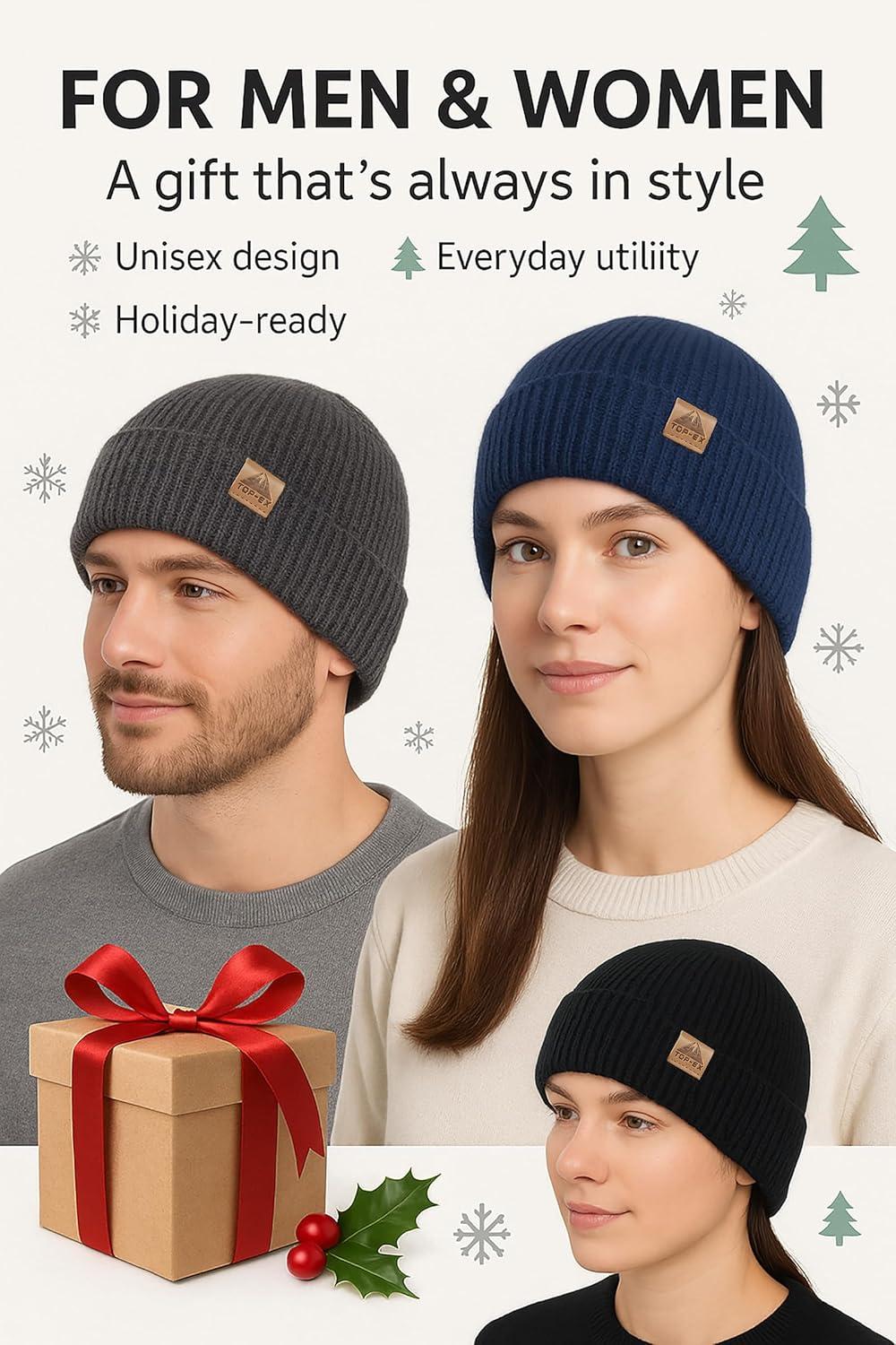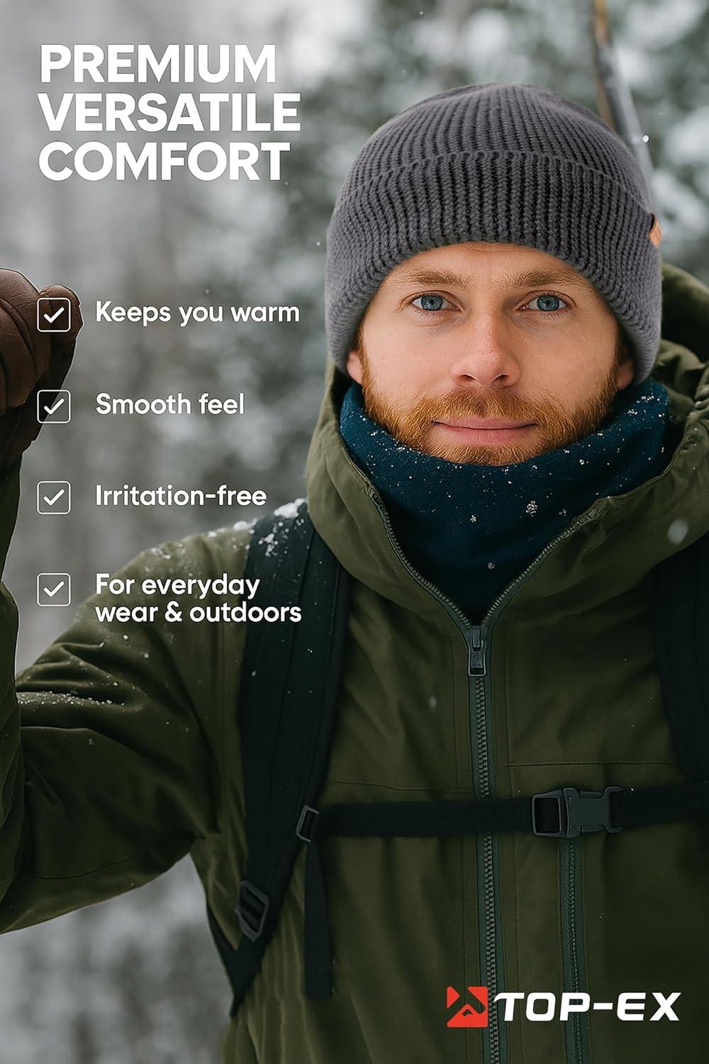 TOP-EX PolarWool™ 100% Merino Wool Beanie Hat for Men Women – Warm Soft Knit Winter Hat for Large Heads Hiking Running(Darkgrey)