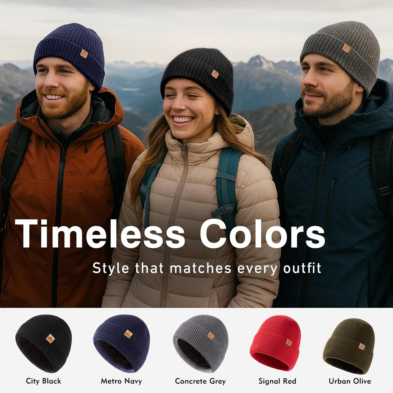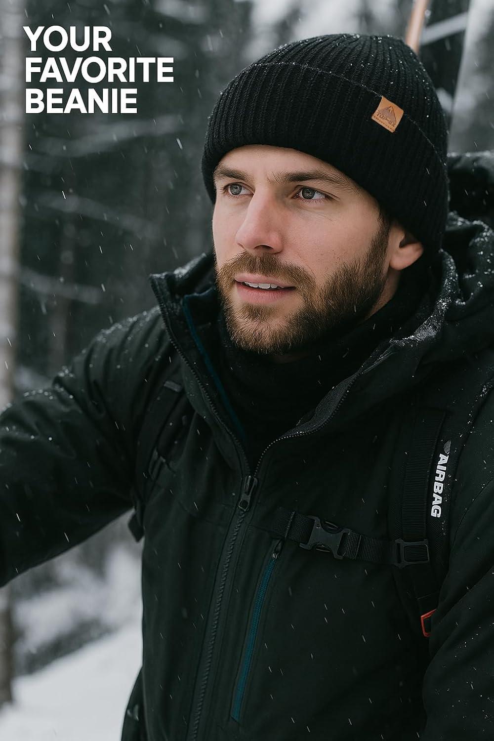 TOP-EX PolarWool™ 100% Merino Wool Beanie Hat for Men Women – Warm Soft Knit Winter Hat for Large Heads Hiking Running(Black)