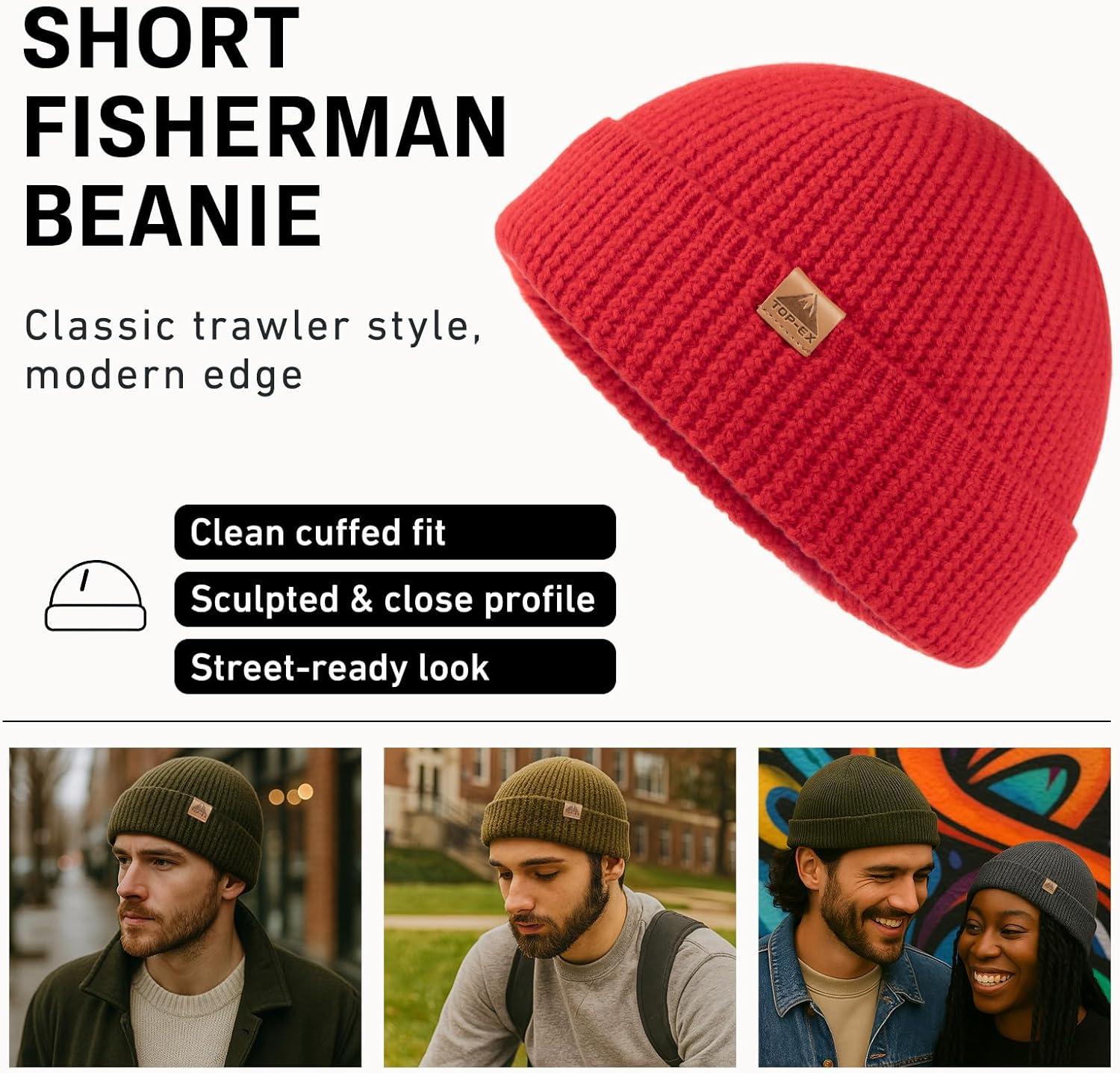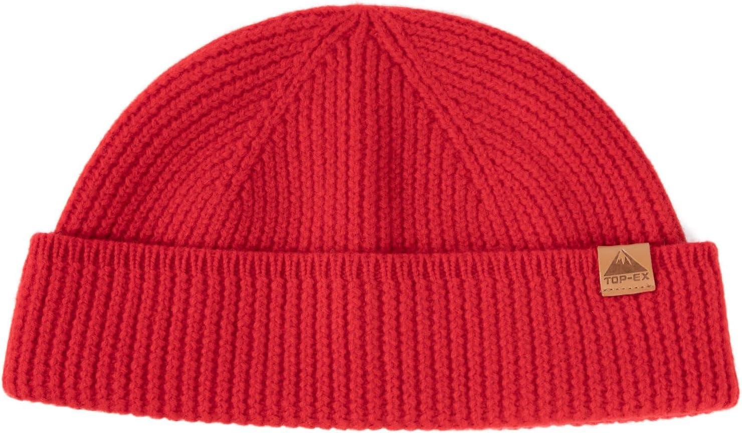TOP-EX PolarWool™ 100% Merino Wool Fisherman Beanie Hat | Soft Single Layer Warm Short Sailor Trawler Cap for Men Women(Signal Red)