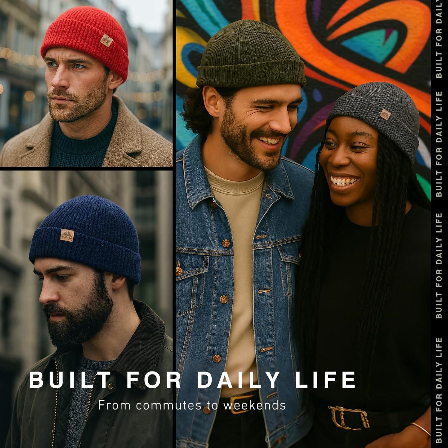 TOP-EX PolarWool™ 100% Merino Wool Fisherman Beanie Hat | Soft Single Layer Warm Short Sailor Trawler Cap for Men Women(Metro Navy)