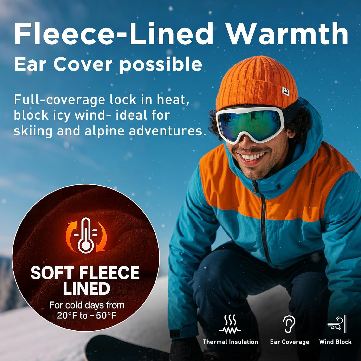TOP-EX PolarWool™ Oversized 100% Merino Wool Fleece Lining M L XL XXL Beanie Cold Weather Winter Hat Big Head(Te94586_red)
