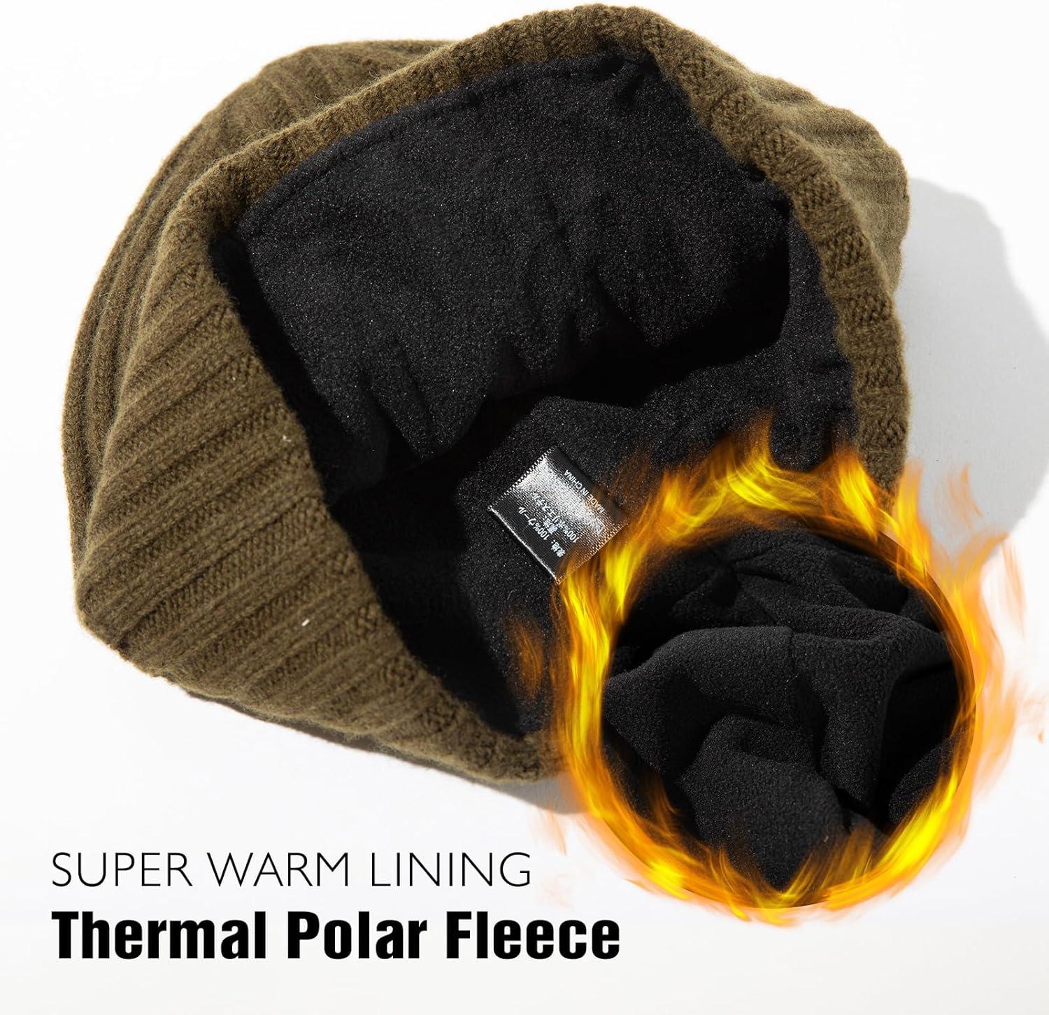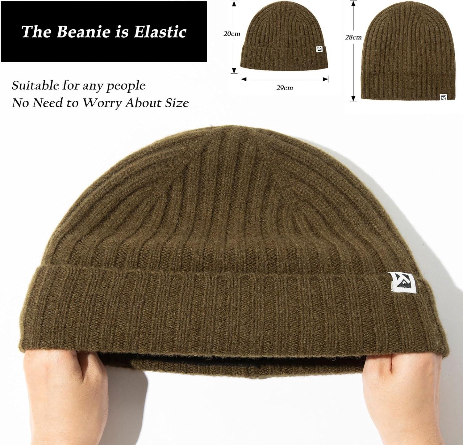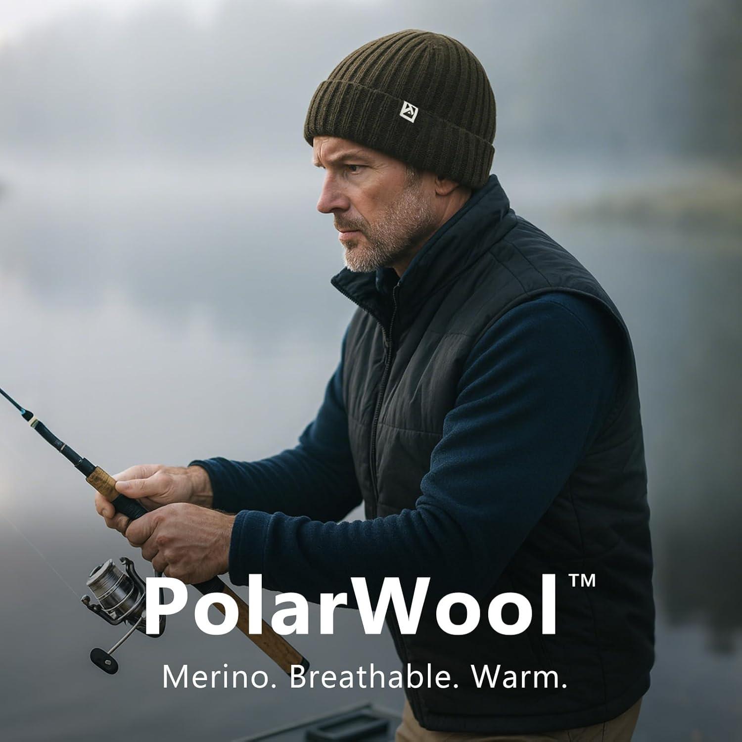 TOP-EX PolarWool™ L/XL/XXL 100% Merino Wool Beanie Fleece Lined Hat Watch Cap for Cold Weather Winter Warm(Army Green)
