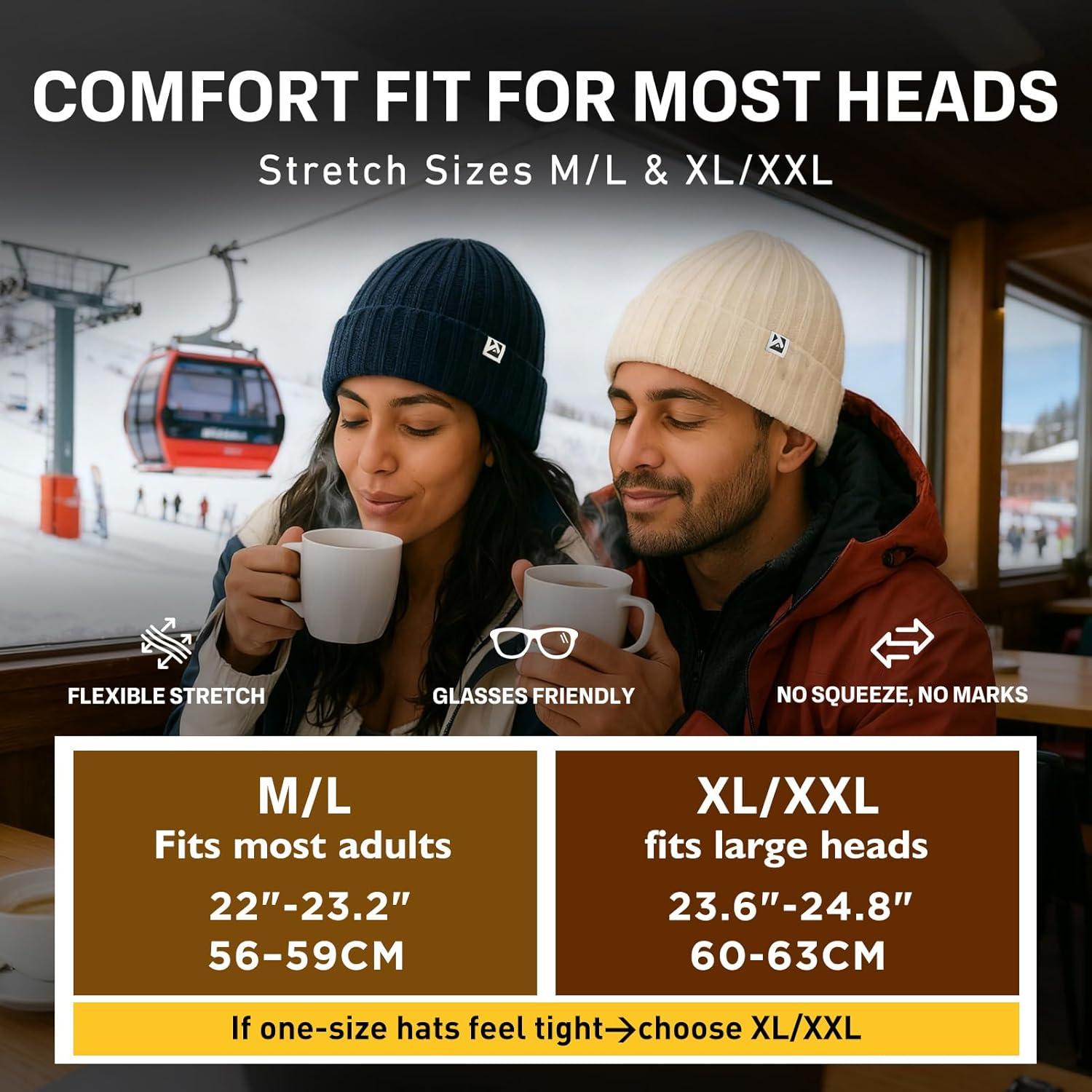 TOP-EX PolarWool™ L/XL/XXL 100% Merino Wool Beanie Fleece Lined Hat Watch Cap for Cold Weather Winter Warm(Beige)