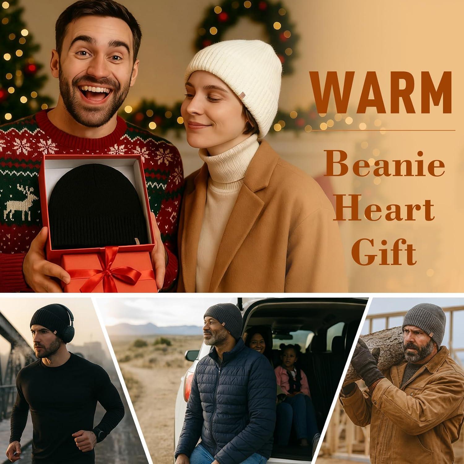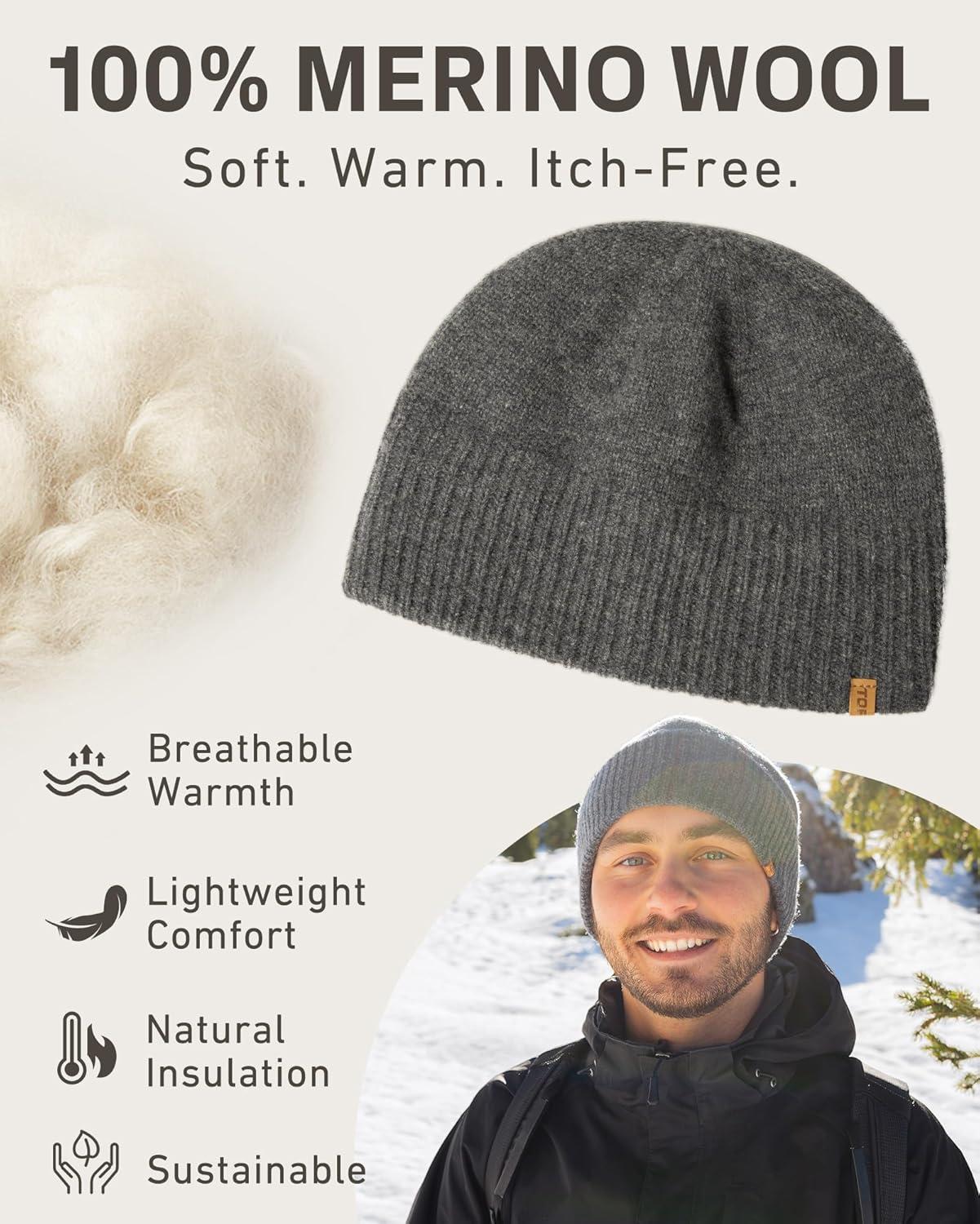 TOP-EX PolarWool™ Merino Wool Beanie Polartec® Fleece Lined L/XL/XXL Unisex Warm Winter Knit Hat Watch Cap(Red(maple))