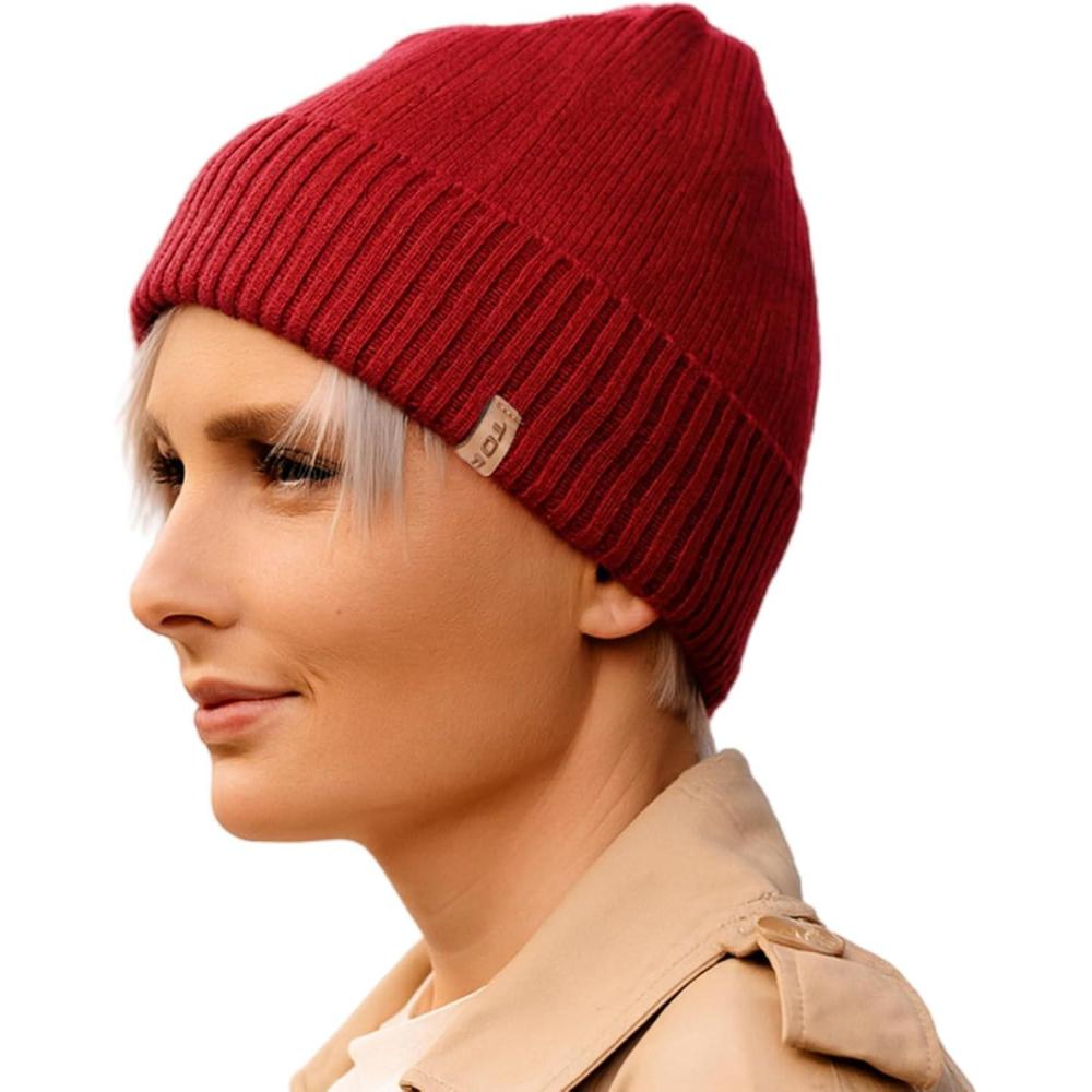imageTOPEX PolarWool Merino Wool Beanie Polartec Fleece Lined LXLXXL Unisex Warm Winter Knit Hat Watch CapRedmaple
