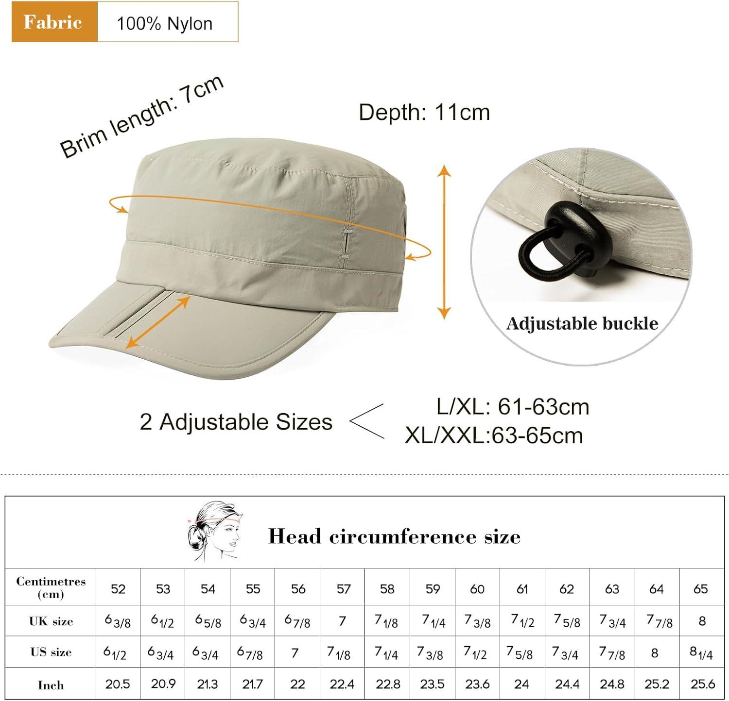 TOP-EX XL XXL Waterproof & UV50+ Army Cap w/Foldable Brim & Card Pocket 61-65CM(94607_lightgrey)