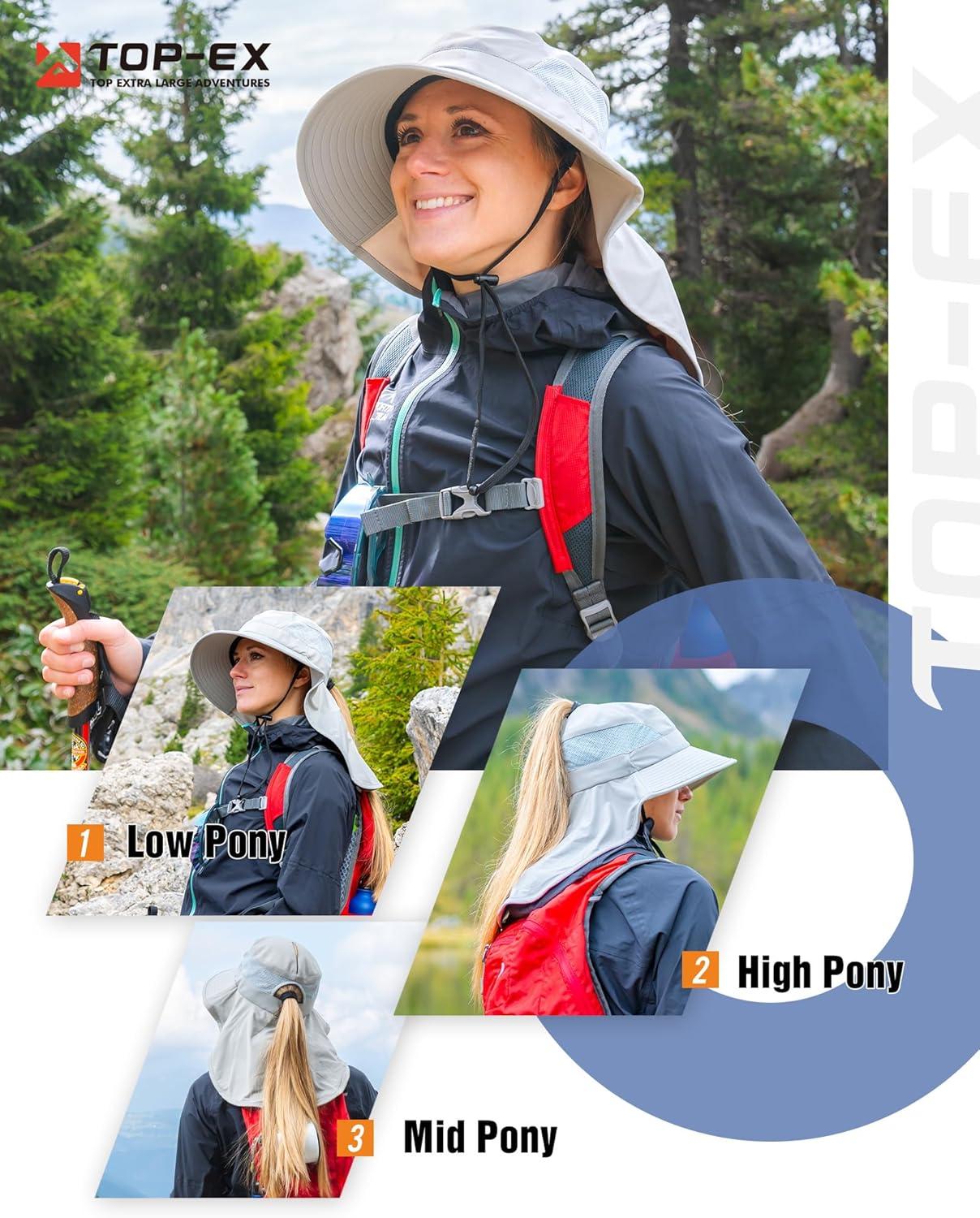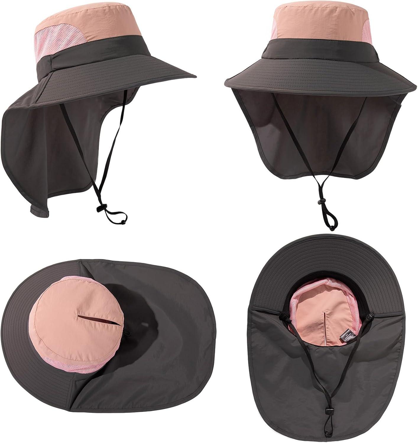 Women’s Flap Ponytail UV 50 Packable Mesh Sun Fishing Beach Hiking Oversized XL XXL Hat(Pink)