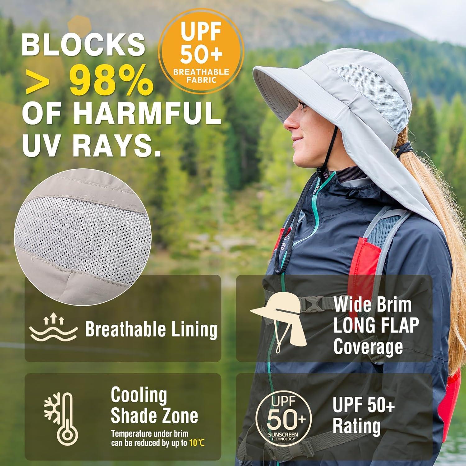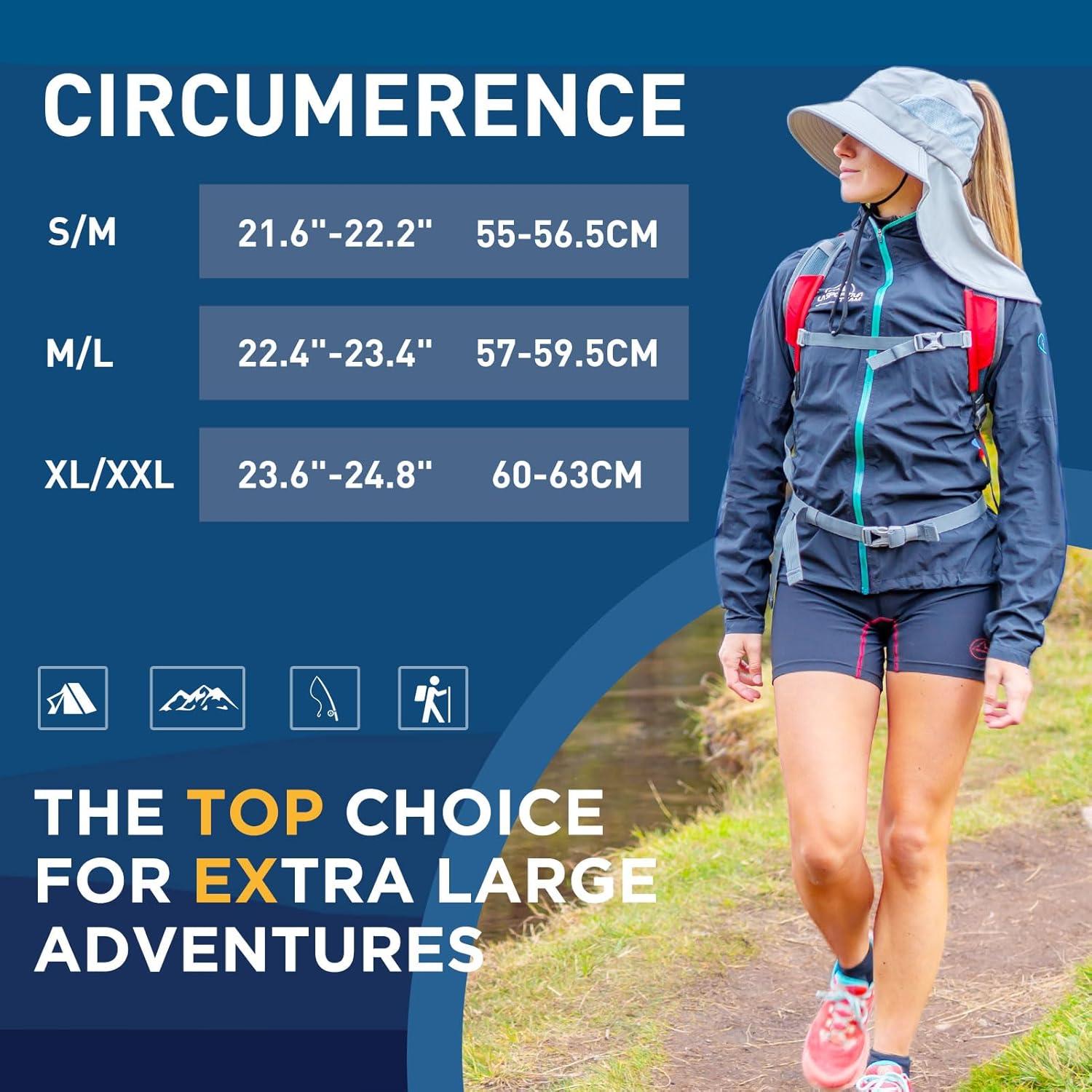 Women’s Flap Ponytail UV 50 Packable Mesh Sun Fishing Beach Hiking Oversized XL XXL Hat(Navy)